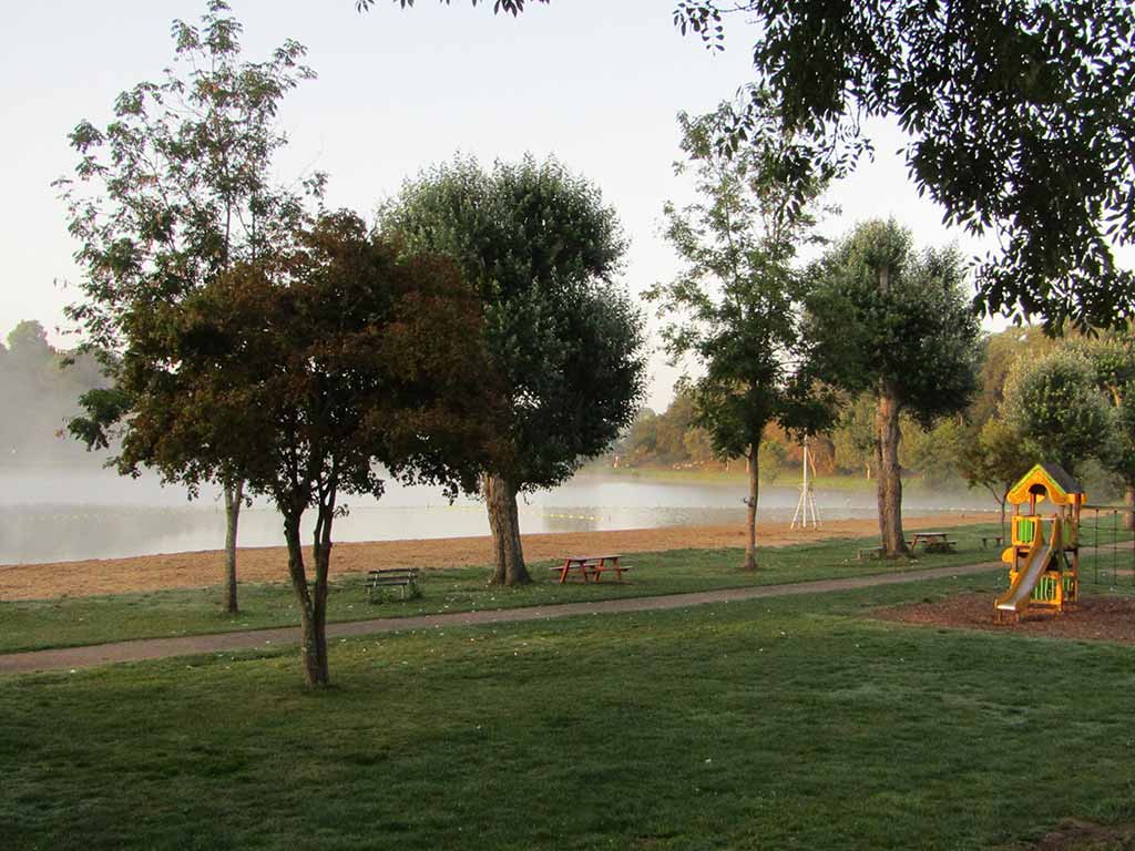 Face au Lac de Brûlon, vous pouvez vous prélasser sur la plage ( surveillée en juillet et août ) et profiter de ces nombreuses activités ( baignade, pédalo, paddle, balades sur les sentiers … ).