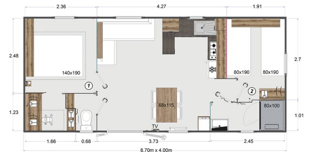 Mobil-home PREMIUM 5 pers 2025 avec lave vaisselle